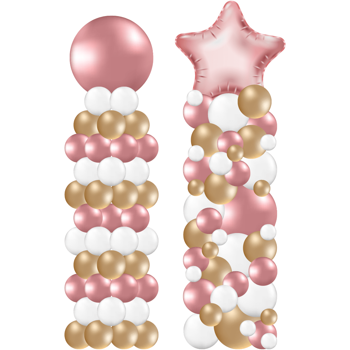 Každý sloup tvoříme v organickém stylu z balónků různých velikostí, ve vámi zvolených barvách. Výsledkem je dekorace, která okamžitě přitáhne pozornost a doladí atmosféru celé události.
